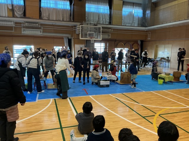 子供たちの「よいしょ!」の大きなかけ声も体育館に響いています。