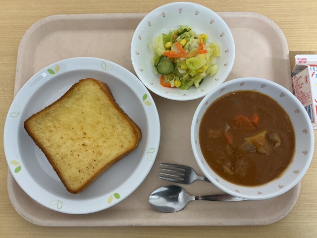 牛乳 はちみつレモントースト チキントマトシチュー コーンサラダ