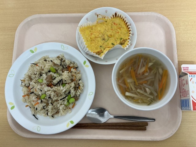 牛乳 ひじきごはん ぎせい豆腐 沢にわん