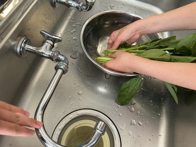 5年生の家庭科の様子です。今日は葉物野菜を茹でる学習です。しっかりお話を聞いているのですが、いざ茹で始めるとなると・・。どの子も一生懸命取り組みました。