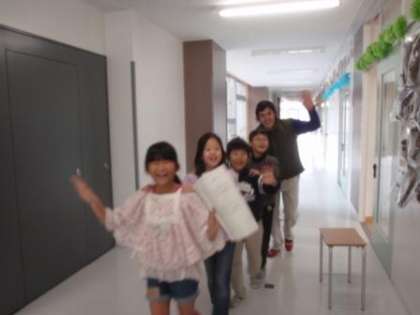 グループで学校を案内しました。