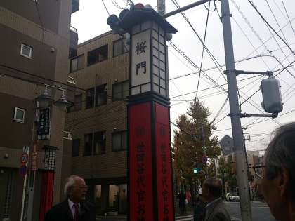 ボロ市通りの入口には、「桜門」の門構えがすえられています。