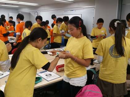 銀行で作ってくださった子どもたちの名前が入った名刺を交換します。