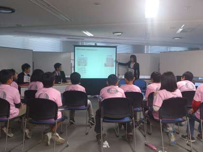 銀行の方が、寸劇などを交えて子どもたちに一生懸命伝えてくれます。