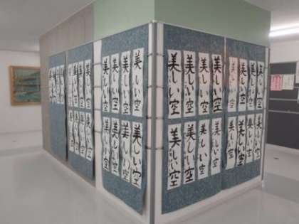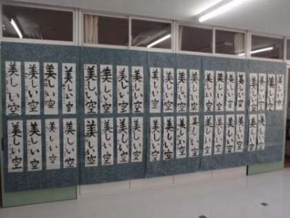 全学年が書き終わると、学校中で書き初めが貼り出されます。