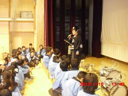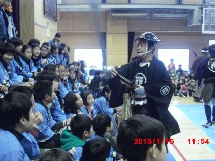 歓迎の演奏を6年生が、そして温かな拍手を下級生が贈る中を代官行列ご一行が桜小を訪問してくれました。