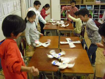 2年生は、説明文を読み取って文章から手作りコマをつくりました。