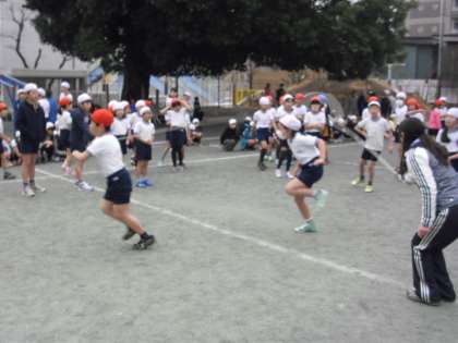 昨日ほどではありませんが、少し肌寒い中でも体育着に着替えた子ども達がクラスごとに5分間で跳べる長縄の回数に挑戦します。