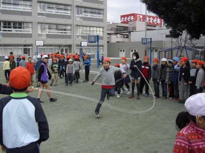 学校では、今、学級ごとに長縄に一生懸命取り組んでいます。