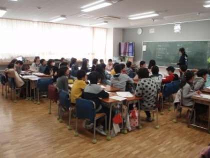 2学期に国語の学習で作った、自分のクラスについて調べた新聞をお互いに読み合いました。