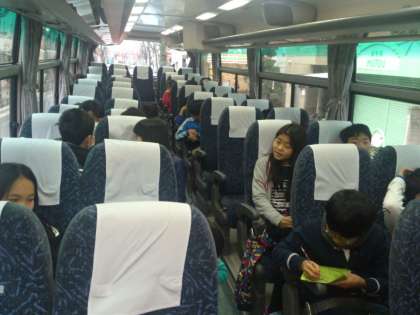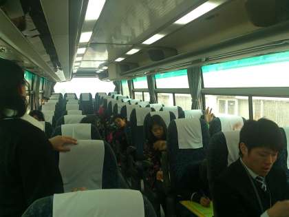 見学のあとは、バスの中が教室となり、係の方にたくさんの質問をしました。