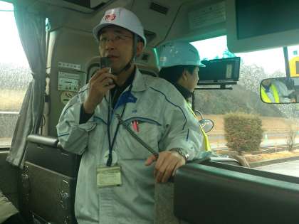 見学のあとは、バスの中が教室となり、係の方にたくさんの質問をしました。