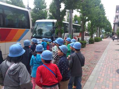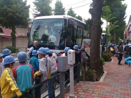 出発前に図工の先生と鑑賞のマナーを確認して、世田谷美術館まで貸し切り観光バスで移動します。