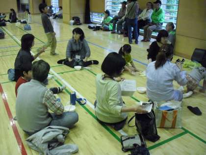 引き渡しの後、地区班ごとに自己紹介をして互いによく知り合う契機としました。