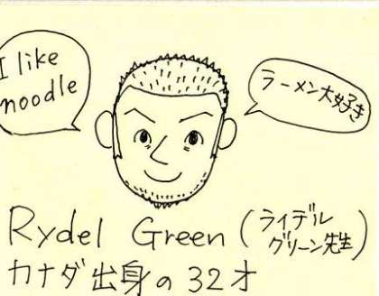 先生の名前は、ライデル・グリーン先生。カナダ出身で趣味はバスケットボールやサッカーだそうです。日本食も好きで、特に麺類が好きなのだとか。ラーメン、うどん、そうめんが好きとのことです。