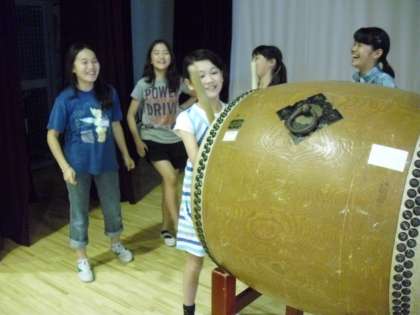 どの子も飲み込みが早く、「炭坑節」に合わせ、太鼓の節を上手にたたいていきます。