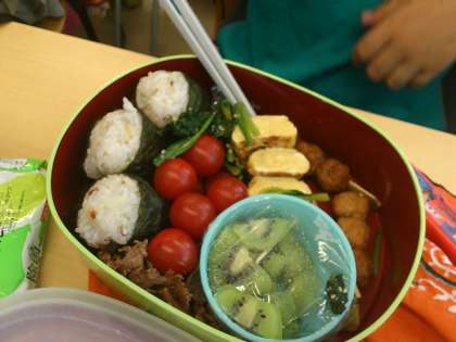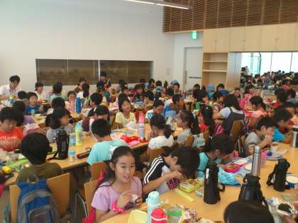 美味しそうなお弁当を前に子どもたちの笑顔が広がります。