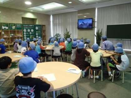建物の中での説明では、ごみの種類や処理、埋立の仕方だけでなく、埋立地に降った雨水の処理や発電、二酸化炭素の排出などについての学習をしました。