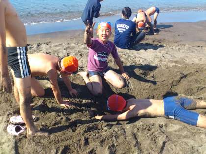 先生が埋められたり、トンネルをほったり、きれいな浜を楽しんでいます!