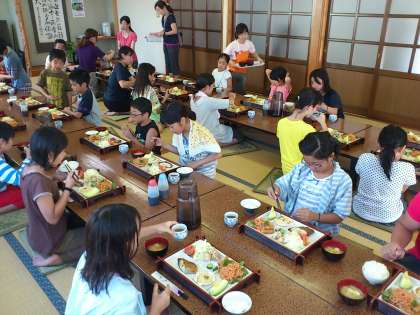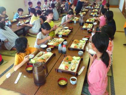 子供たちはお風呂に入り、夕食をいただきます。