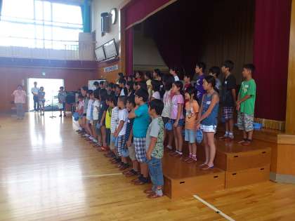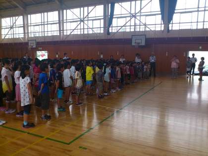 体育館での全校の歓迎会では、日吉小学校の子たちがきれいな声で桜小の校歌を元気よく歌ってくれました。