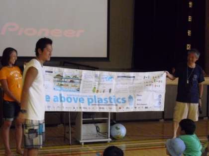 第2部は、体育館で分かりやすい写真や啓発資料を提示していただき、今、海で起きていることやどうしたらきれいな海を守ることができるのかをみんなで考えました。