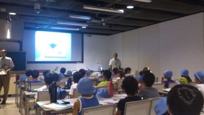 三年生の食と農の博物館見学は、次に昆虫博士から蝶の成長についてのお話を伺いました。