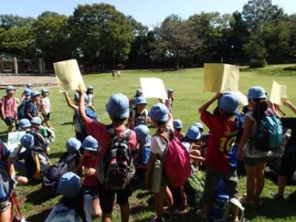 3・4年の縦割りグループに分かれて、オリエンテーリングをしました。
