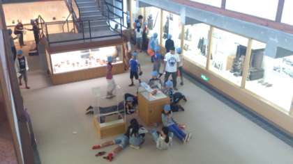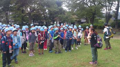 子どもたちが泊まる宿舎近くの川からはナウマンゾウの臼歯の化石が見つかっています。
