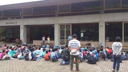 掲揚塔に校旗が揚がり、川場村での生活が始まります。
