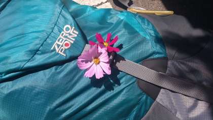 道端の花で子どもたちが私のリュックを飾ってくれました。