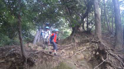 子どもたちは、ハイペースで歩いてきますが、険しいクサリ場もあったりします。