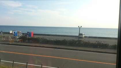 車窓からは材木座の海に太陽がきらきら映る景色が見られます。