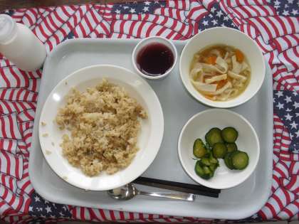 昨日の給食です。「給食好きな人ー!」と聞くと