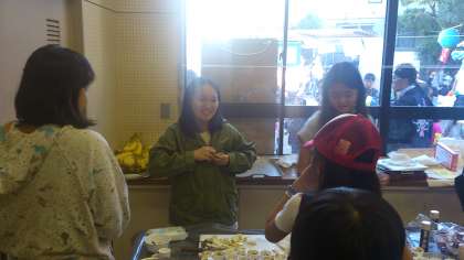 桜小の6年生は、飲食の販売コーナーを担当して下級生に優しく声をかけていました。