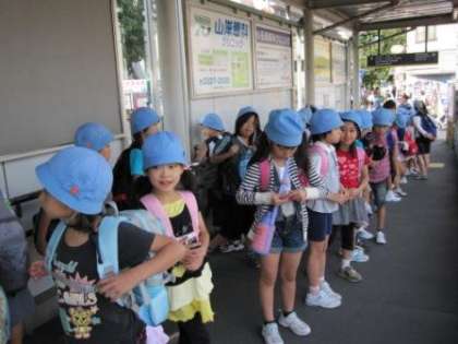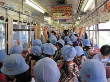 上町駅でわくわくしながら、電車を待ちました。電車の中では、静かに上手に乗ることができました。