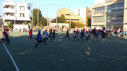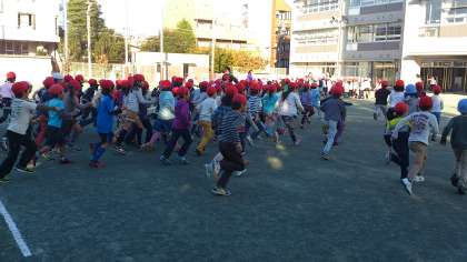 しっかりと準備運動をして、子どもたちは自分のペースで校庭を駆け巡ります。