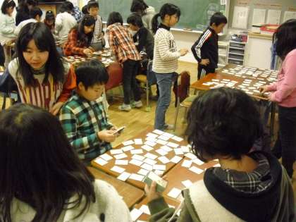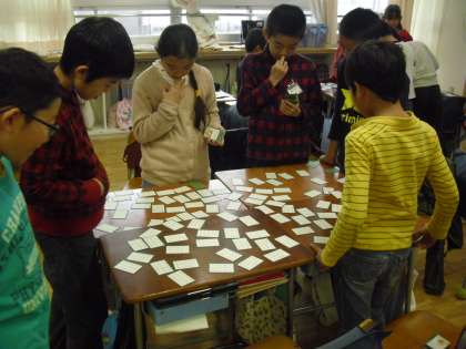 4年生が、百人一首を楽しんでいます。
