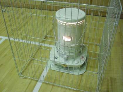 既存のストーブを合わせて3台のストーブで体育館はほどよい温度に。