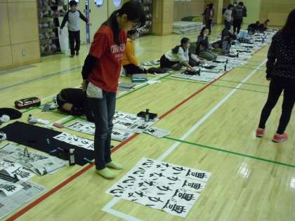3・4校時は、5年生が体育館で書き初めに取り組みました。