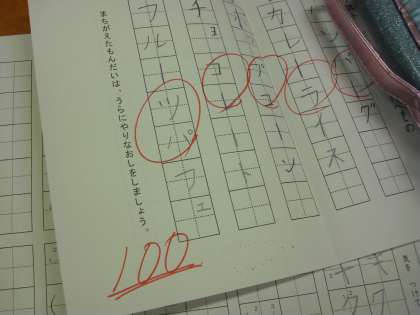 1年生がカタカナの復習をしています。