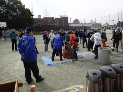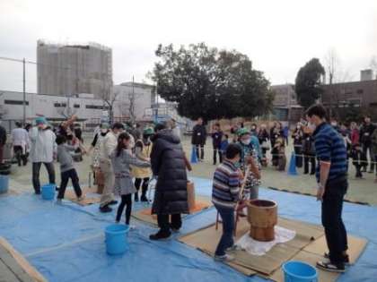 多くの人が準備をしてくだり、自分たちがつき上げたお餅を、