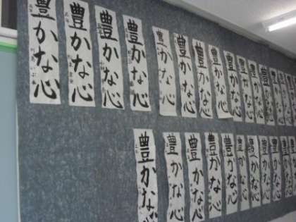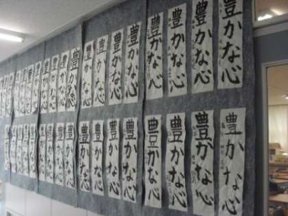 書き初めをする際は、朝のぴーんと張った空気の中、どの児童も真剣な表情で筆を動かしていました。