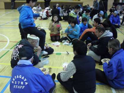 地域の皆さんと一緒においしいお餅を食べました 寒餅会