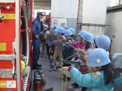 救助活動に使う道具や、ポンプ車、消防署内の設備を見せてもらいました。