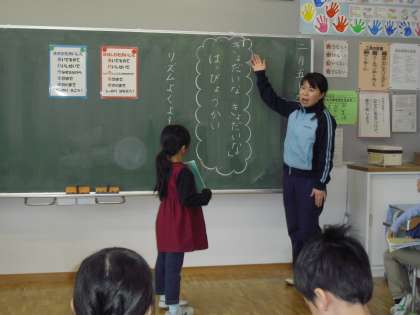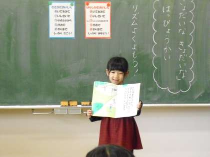 自分で作った文章をリズムよく、発表します。
