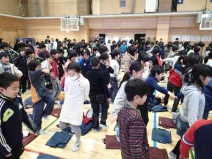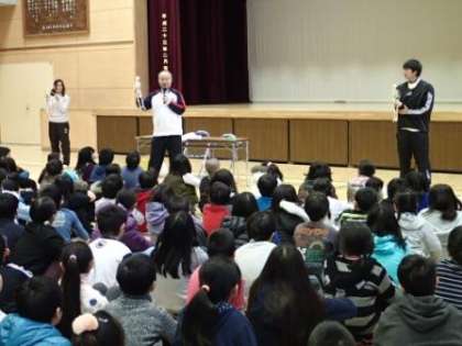 4〜6年生が体育館に集まって、お話を聞いたり、体を動かしたりしました。