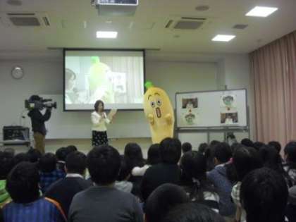職員の方以外にも、当日はスペシャルゲストで、テレビ東京のマスコットキャラであるナナナも来てくれました。(子ども達にはサプライズでした。)