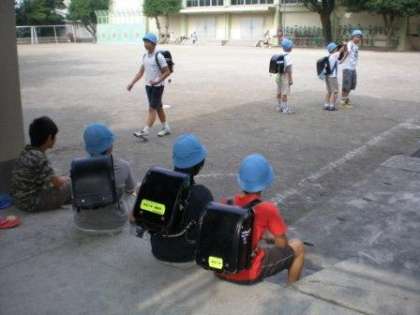 朝、8時10分のチャイムで子どもたちは校舎内に入ります。