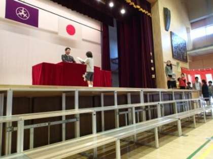 各クラスの代表者が、校長から修了証を受け取りました。